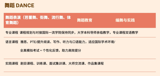 唯一性1:国内唯一舞蹈专业对口,如街舞、流行舞、芭蕾舞、国际标准舞直送对口国外学校对口专业。
